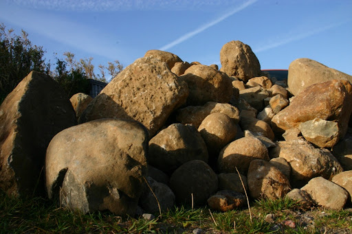 Die großen Brocken blieben vorerst an Land da es schwer, um nicht zu sagen unmöglich, ist diese Steine wieder vom Boot zu